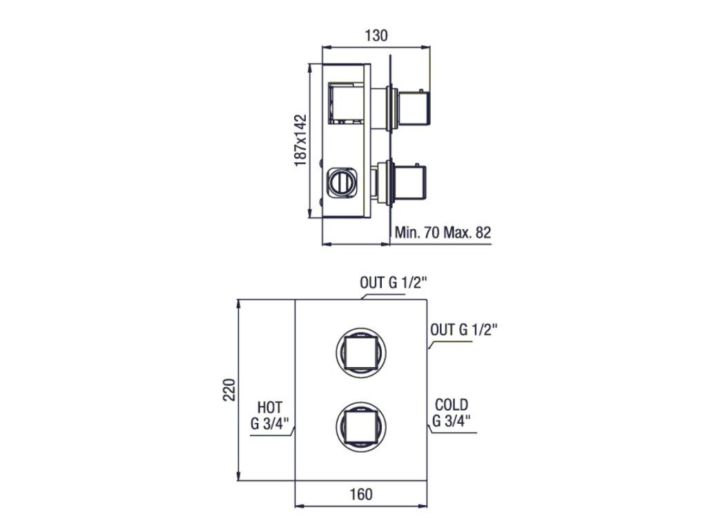 Sapho DIMY podomítková sprchová termostatická baterie, 2 výstupy, chrom DM392