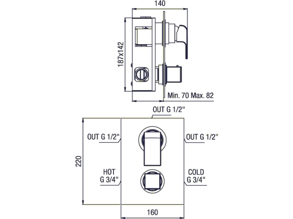 Sapho DIMY podomítková sprchová termostatická baterie, 3 výstupy, chrom DM393