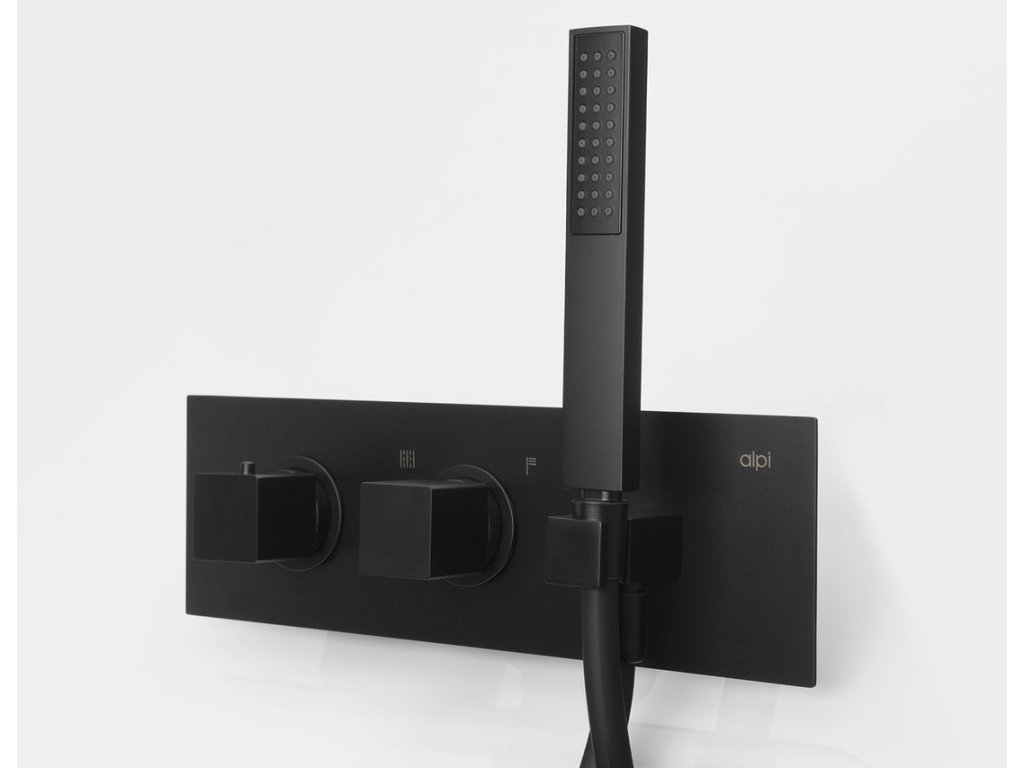 Sapho DIMY podomítková sprchová/vanová termostatická baterie s ruční sprchou, 2 výstupy, černá mat DM493BL
