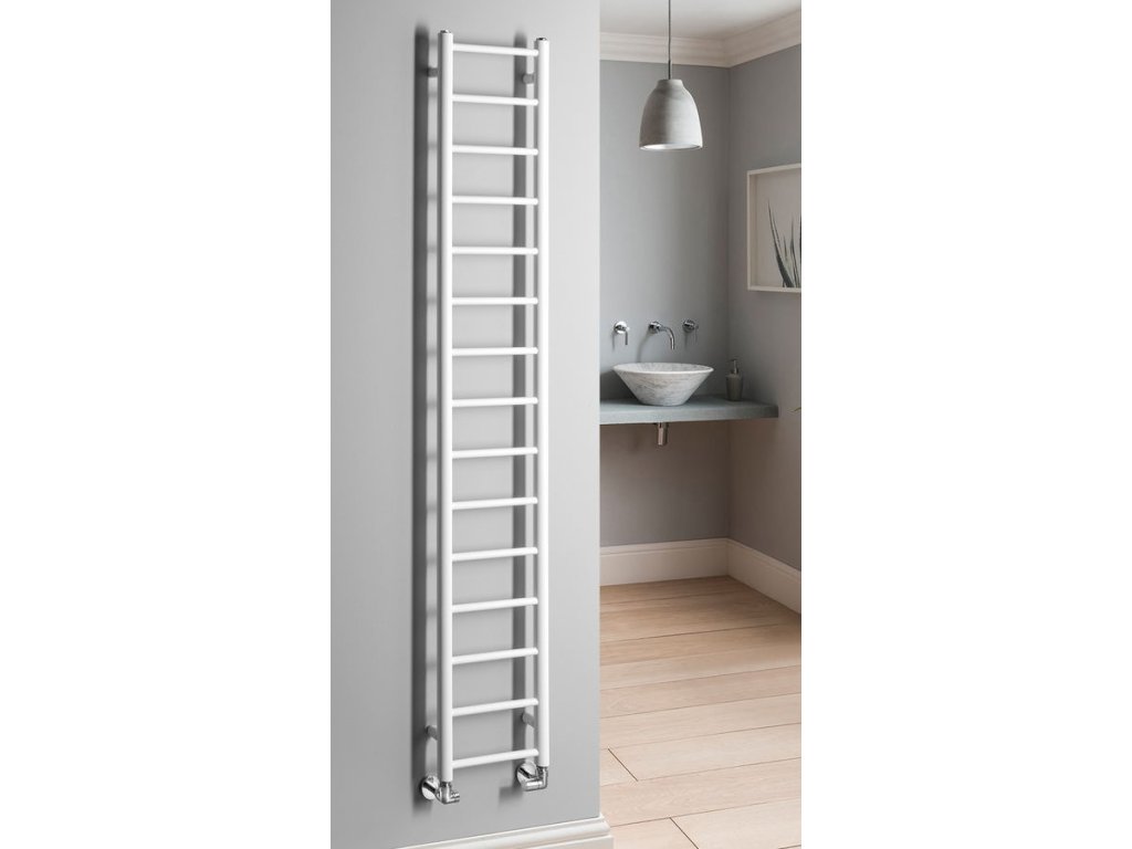 Elegantní koupelnový radiátor ze správně kombinovaných průměrů vodorovných a svislých trubek. Krása v jednoduchosti skloubená s atraktivním barevným provedením.