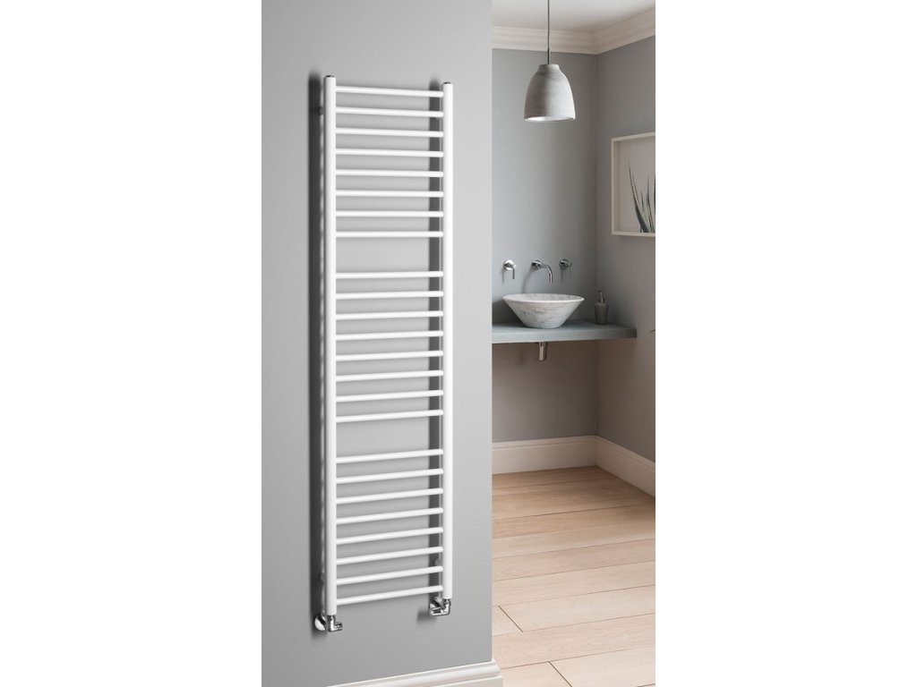 Elegantní koupelnový radiátor ze správně kombinovaných průměrů vodorovných a svislých trubek. Krása v jednoduchosti skloubená s atraktivním barevným provedením.
