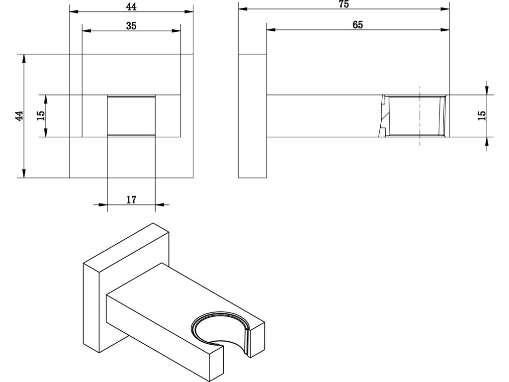 Sapho Držák sprchy hranatý, pevný, chrom AQ586
