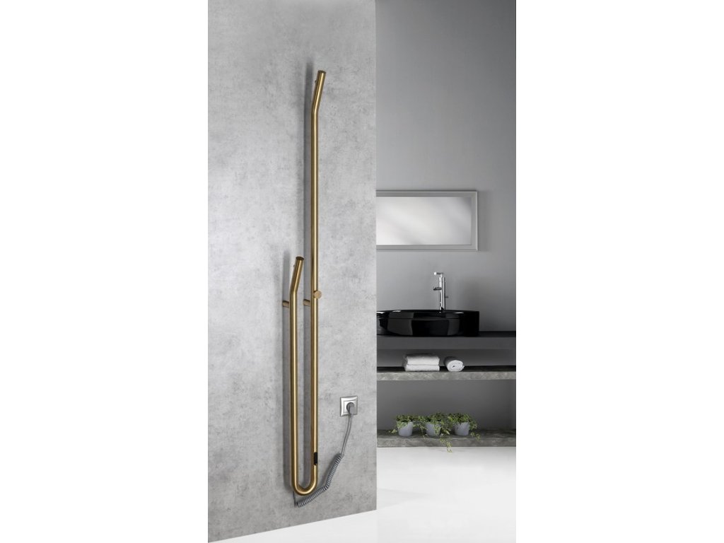 Sapho DUOPASSO elektrický sušák ručníků s časovačem, 122x1700mm, 45 W, zlato mat ER830