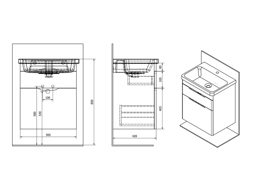 Sapho ELLA umyvadlová skříňka 56, 5x65x43cm, 2x zásuvka, bílá EL062-3030