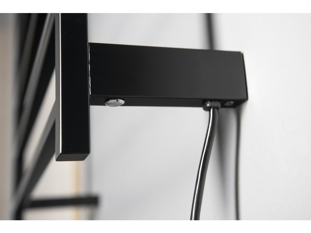 Vypínač je integrován ve spodní části pravého vertikálního profilu. Těleso lze zapojit přímo do elektrické zásuvky díky kroucenému kabelu zakončenému vidlicí nebo můžete napájecí kabel skrýt a napojit ho přímo ze stěny do svorkovnice schované v konstrukci tělesa. Napájecí kroucený kabel (délka 1,2 m) je vpravo dole a nelze ho pozičně měnit.