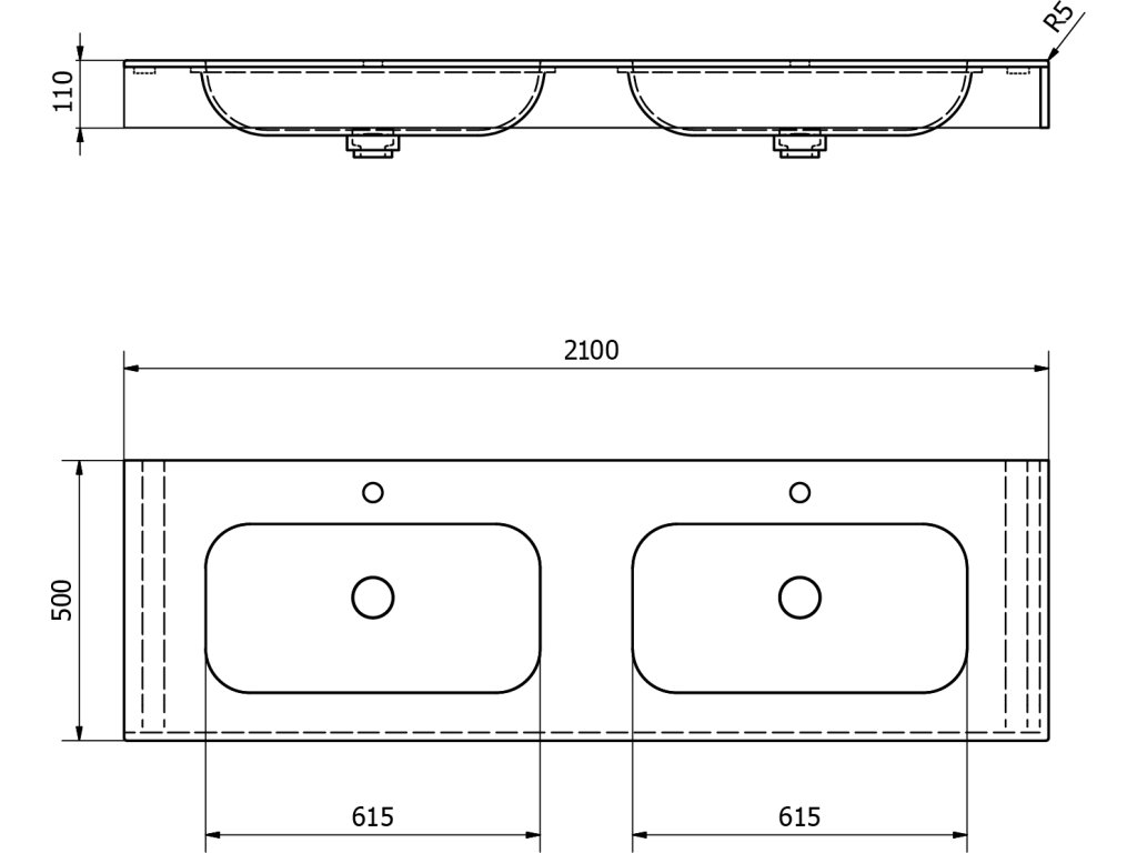 Sapho EMICO dvojumyvadlo, Rockstone, 210x50cm, límec L, bílá mat EM210-B2M-L