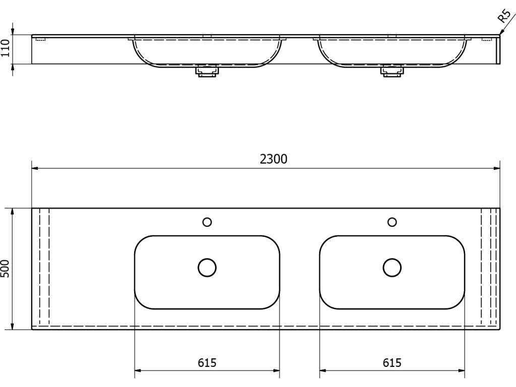 Zátka umyvadlové výpusti je vyrobena ze stejného materiálu jako umyvadlo. V otevřené poloze je zátka v jedné rovině se dnem umyvadla. Umyvadlo lze umístit i do vyzděné niky. Doporučujeme instalovat každých 70 cm podpěrnou konzoli.