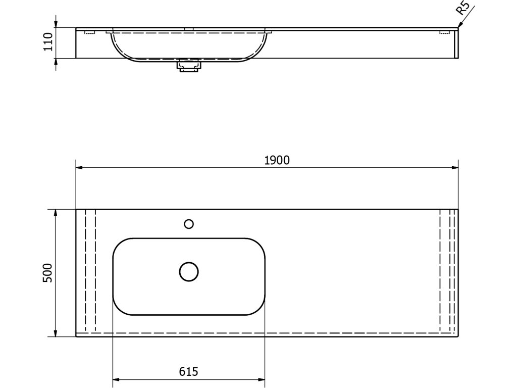 Zátka umyvadlové výpusti je vyrobena ze stejného materiálu jako umyvadlo. V otevřené poloze je zátka v jedné rovině se dnem umyvadla. Umyvadlo lze umístit i do vyzděné niky. Doporučujeme instalovat každých 70 cm podpěrnou konzoli.