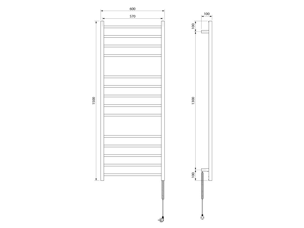 Sapho ESKINADO elektrický sušák ručníků, hranatý, 600x1500 mm, 130 W, nerez lesk ER450V
