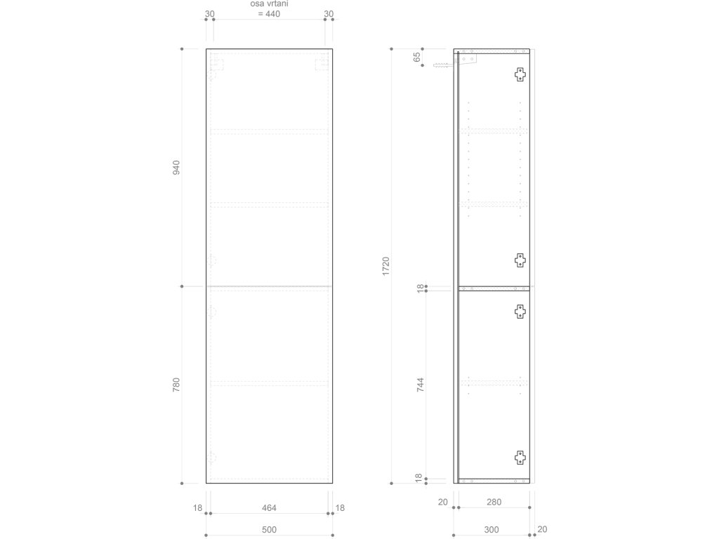 Sapho ESPACE skříňka 50x172x32cm, 2x dvířka, levá/pravá, jilm bardini ESC450-1313