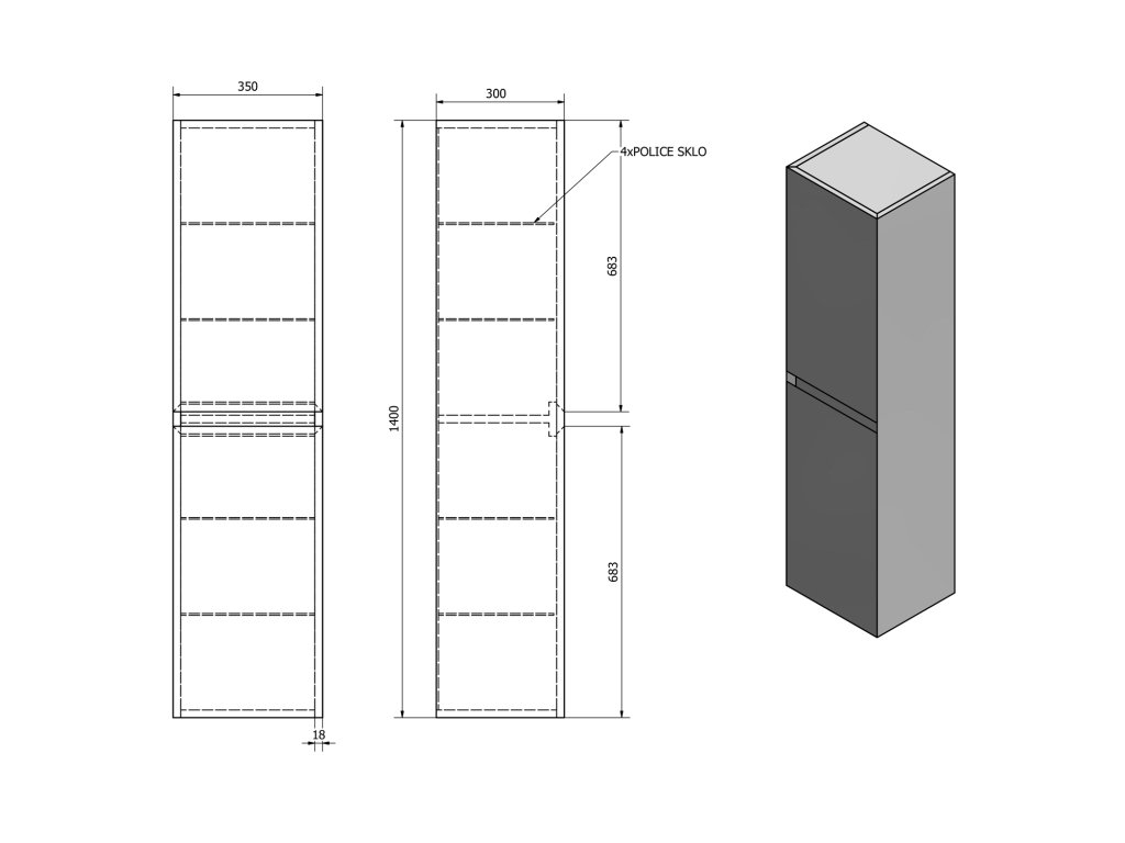 Soubory ke stažení:- V horní i dolní části 2x výškově stavitelná skleněná police