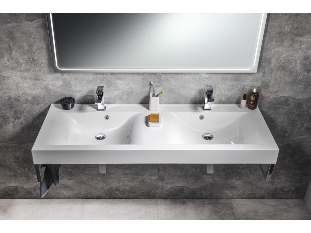 Sapho FLAVIA dvojumyvadlo, litý mramor, 140x50cm, bílá 68141