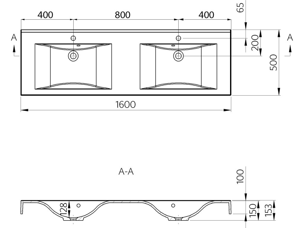 Sapho FLAVIA dvojumyvadlo, litý mramor, 160x50cm, bílá 68164