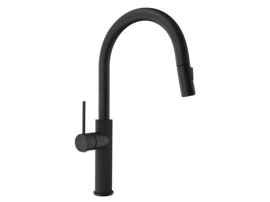 Sapho FLAWO stojánková dřezová baterie s výsuvnou sprškou, černá mat FR576B