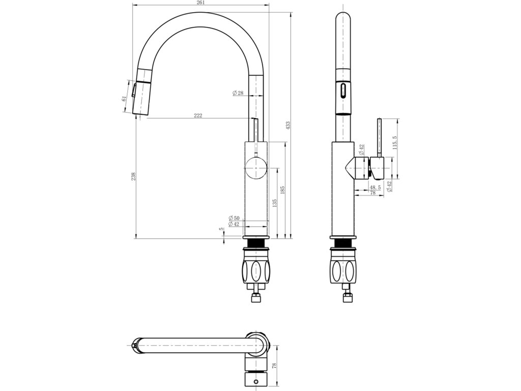 | Ostatní: | Otočné ramínko, Výsuvná hubice/sprcha |