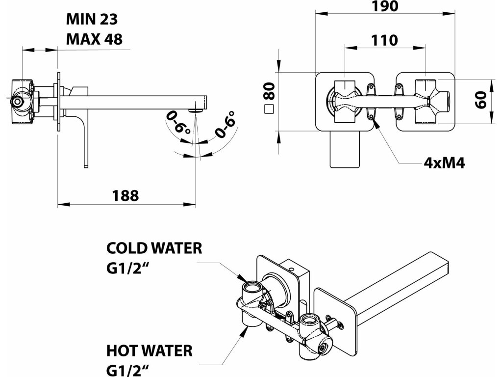 Sapho FORATA podomítková umyvadlová baterie, délka hubice 18, 5cm, chrom FT018