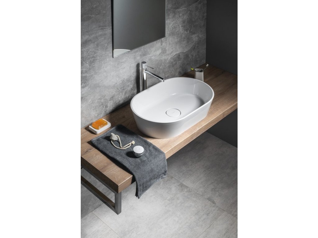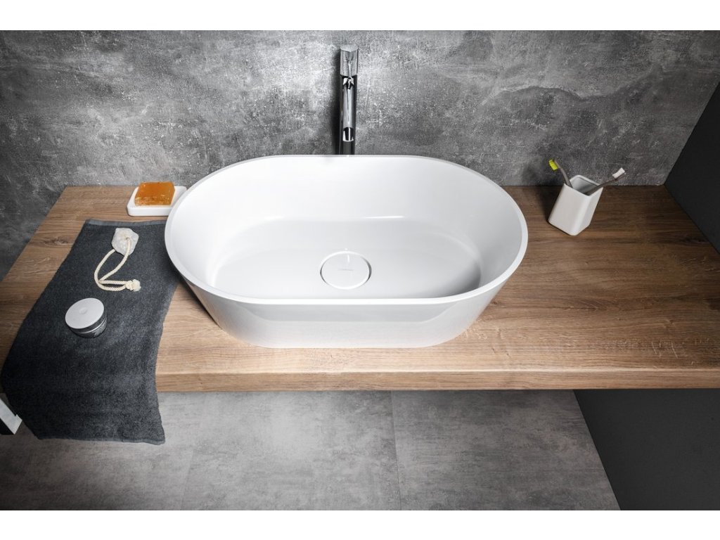 Sapho GERANO umyvadlo na desku, litý mramor, 60x38cm, kryt výpusti, bílá GN600