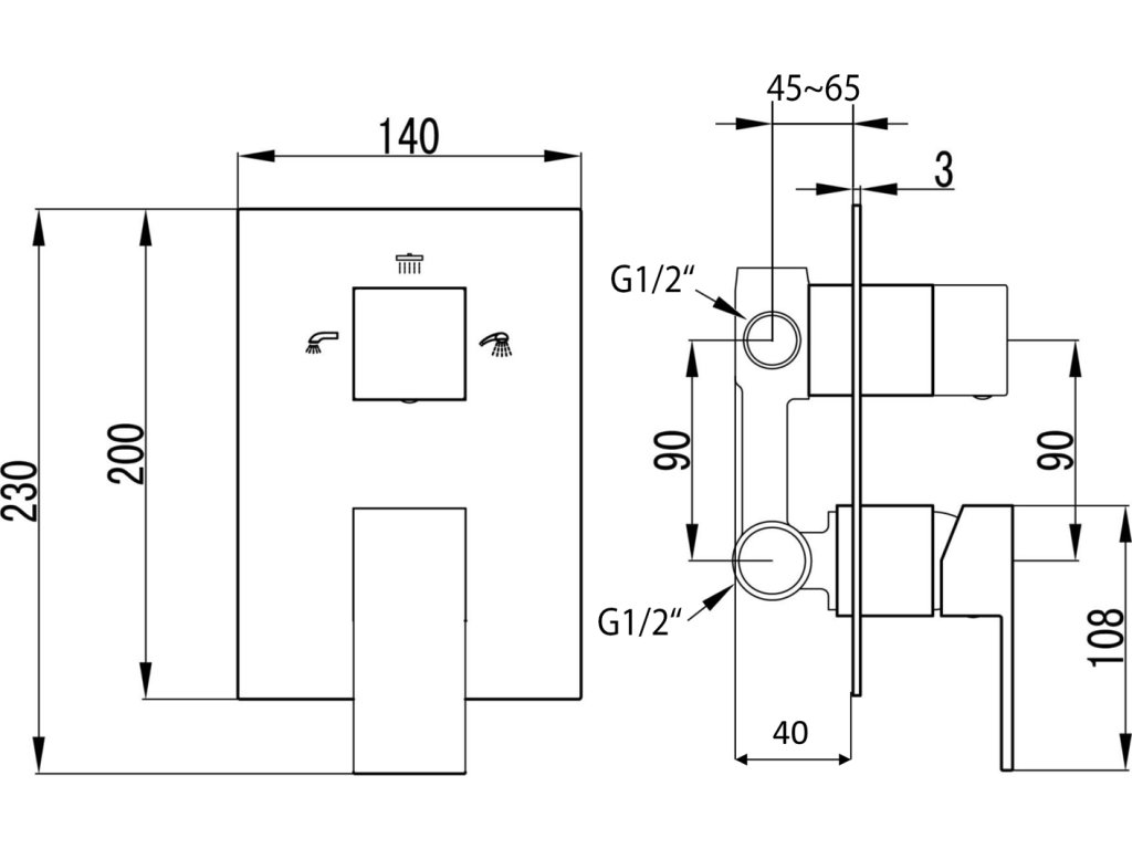 Sapho GINKO podomítková sprchová baterie, 3 výstupy, chrom 1101-44