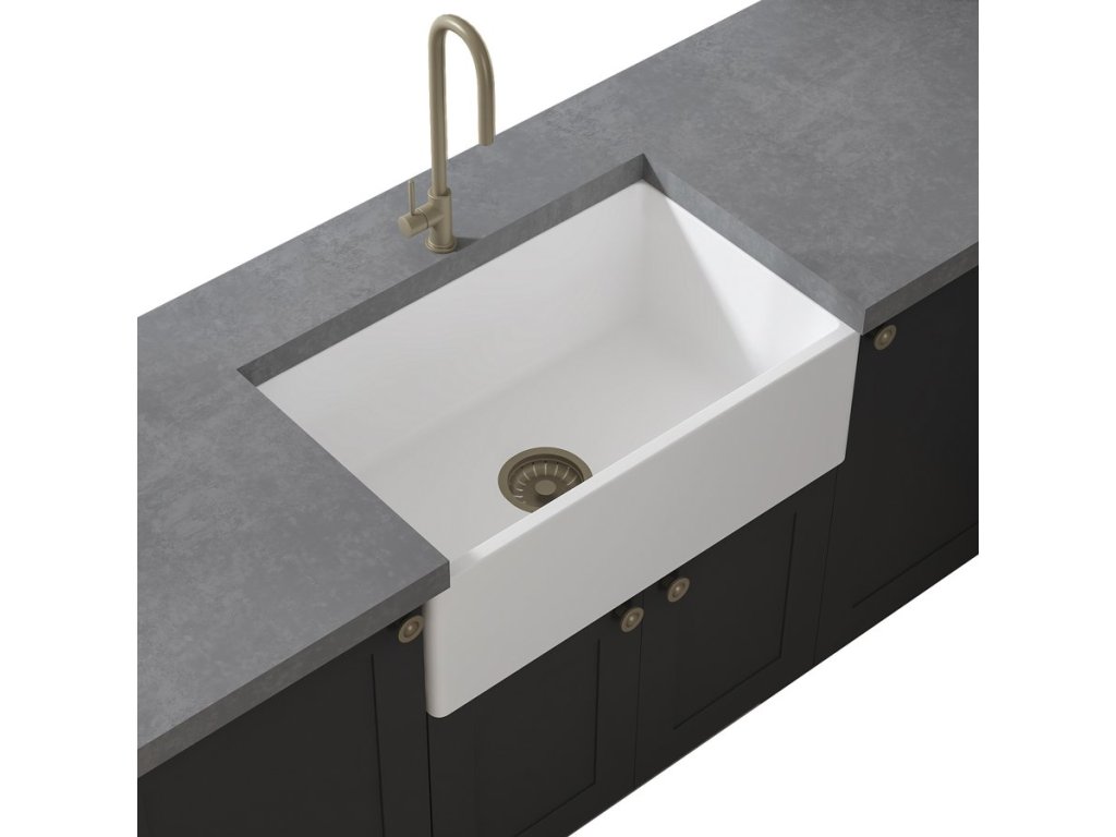 Dřez je usazen mezi dvě pracovní desky nebo do výřezu. |