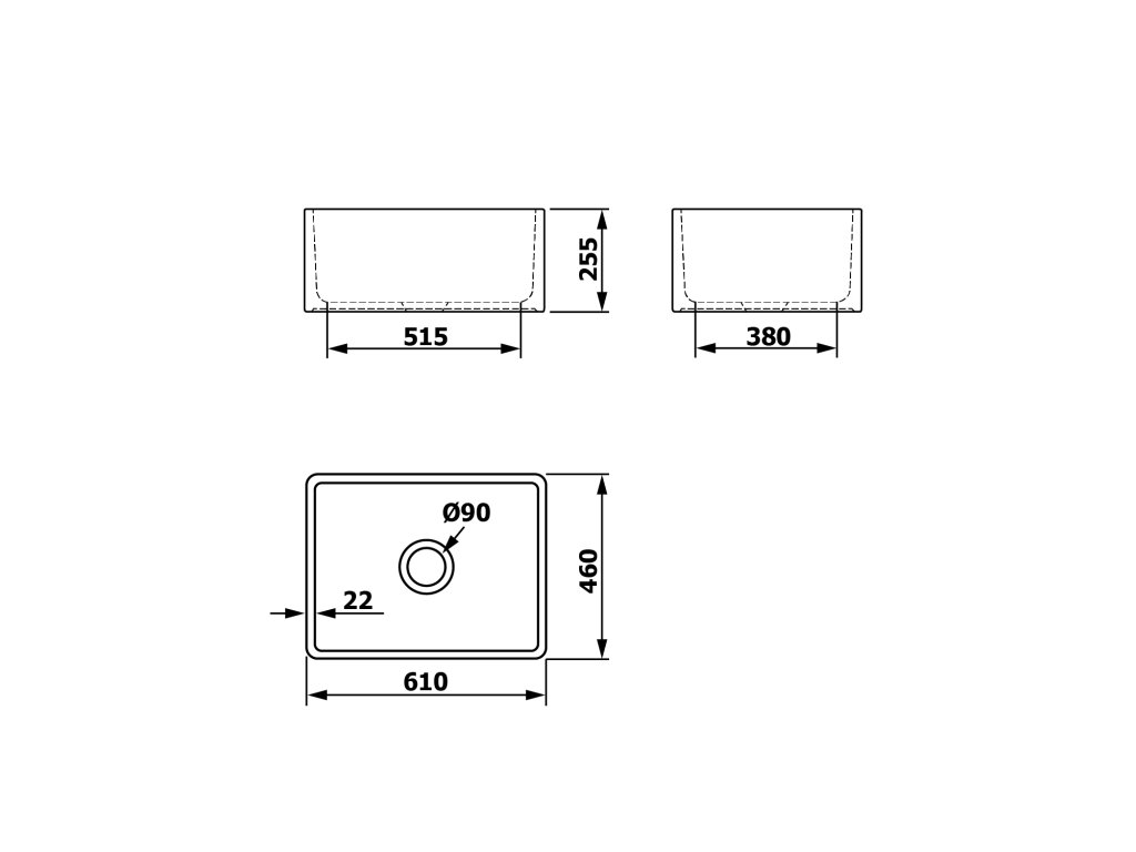 Sapho GLORY keramický dřez 61x46cm, bílá 50260