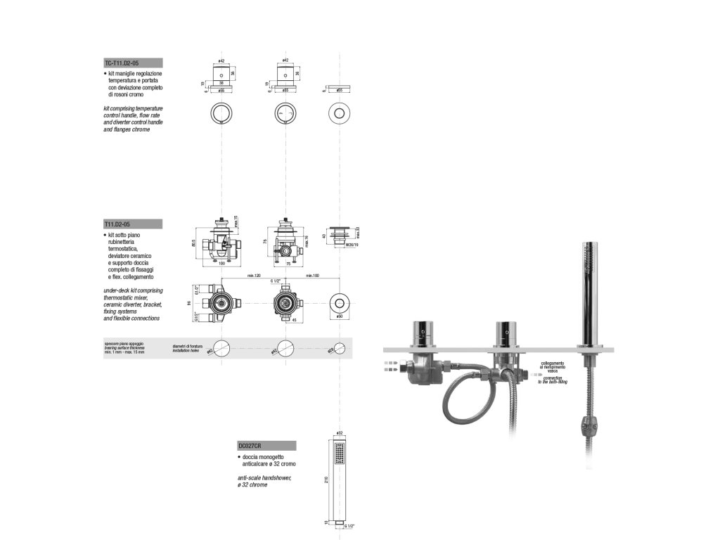 Sapho GO tříprvková termostatická baterie na okraj vany, chrom TH102