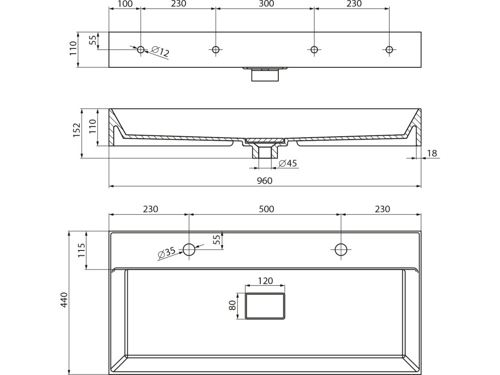 Sapho GODIVA dvojumyvadlo, litý mramor, 96x44cm, bílá GU096-2