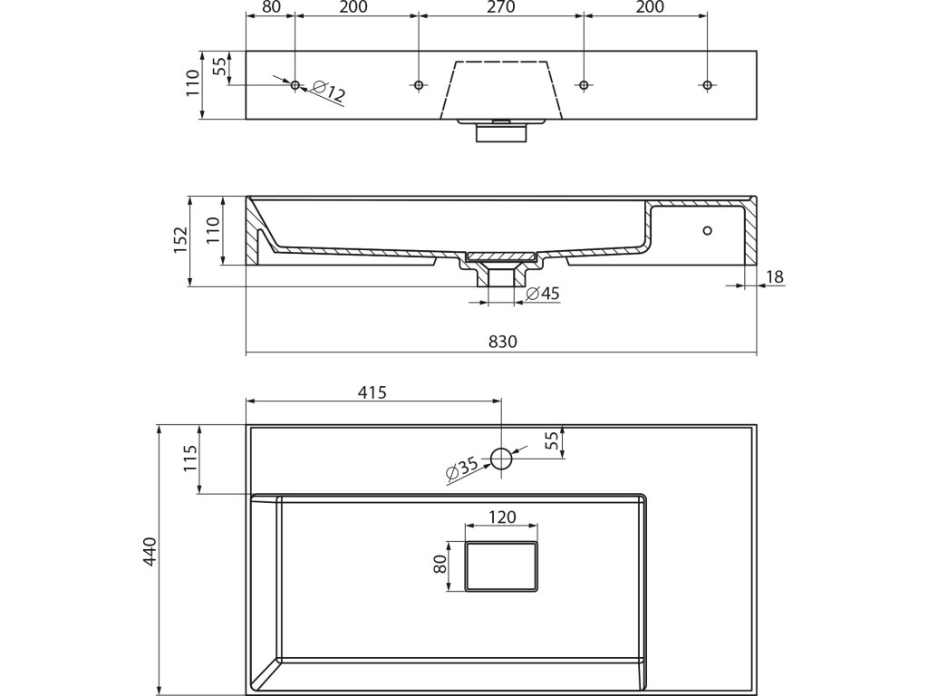 Instalace: | Nástěnná-šrouby, Do nábytku |