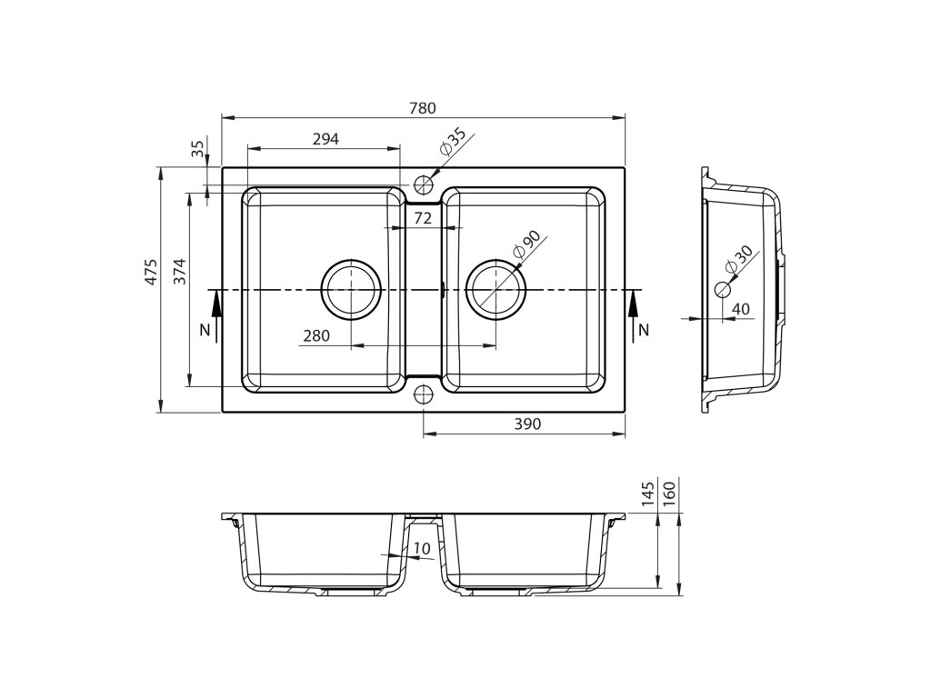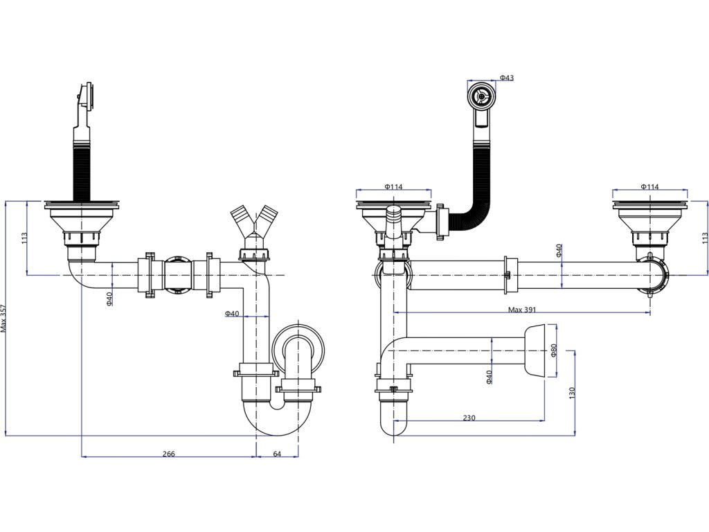 | Balení obsahuje: | Šablona pro výřez, Sifon s odbočkou na myčku/pračku, Výpust bez excentrického ovládání |