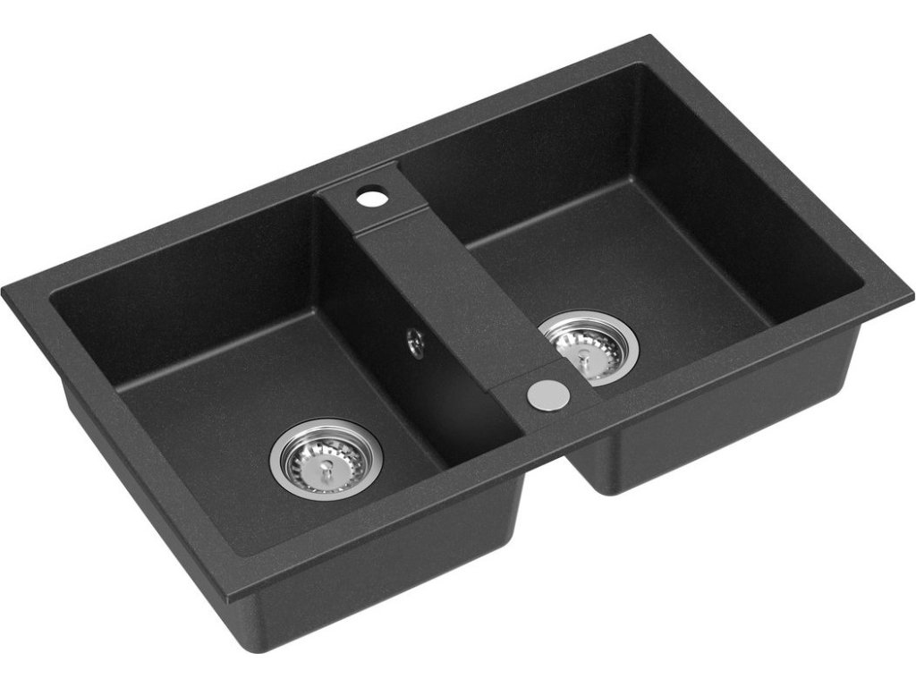 Sapho Granitový dvojdřez, 78x48cm, černá GR2224