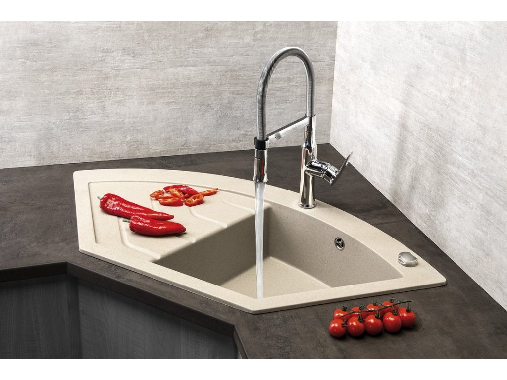 Sapho Granitový vestavný dřez rohový s odkapem, 114x57, 5cm, béžová GR1932
