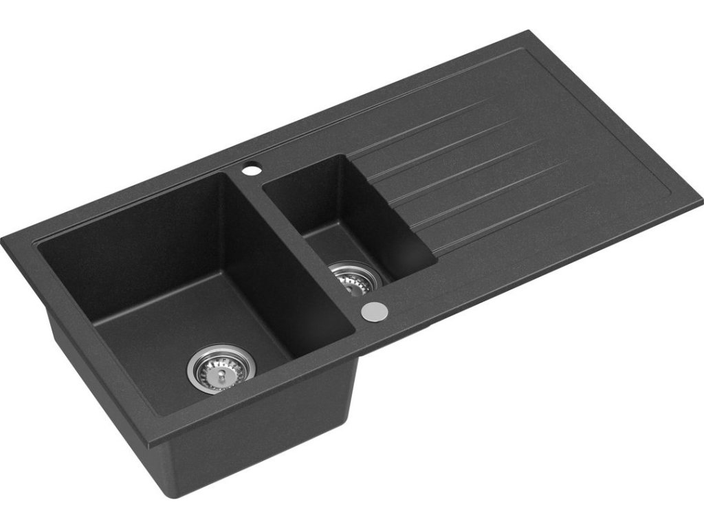 Sapho Granitový vestavný dřez s odkapem a vaničkou, 100x50cm, černá GR1334