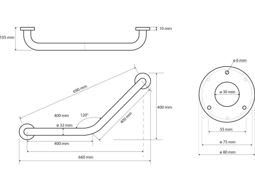 Sapho HANDICAP madlo 120° 400/400mm, nerez lesk XH501