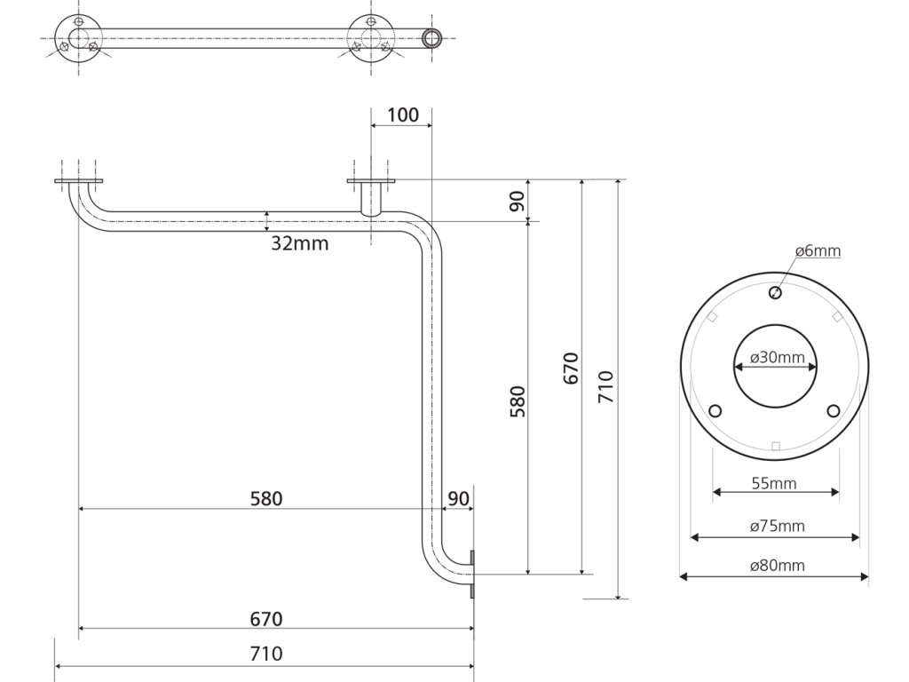 Sapho HANDICAP madlo do sprchy 670x670mm, nerez lesk XH544