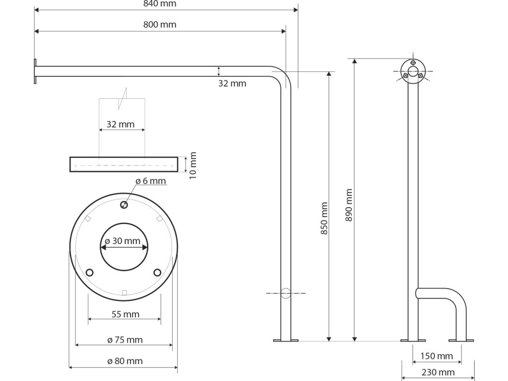 K uchycení jsou dodávány nerez šrouby podle DIN 95, 6×60 mm s hmoždinkami z plastu pro montáž do plných cihel a betonu.