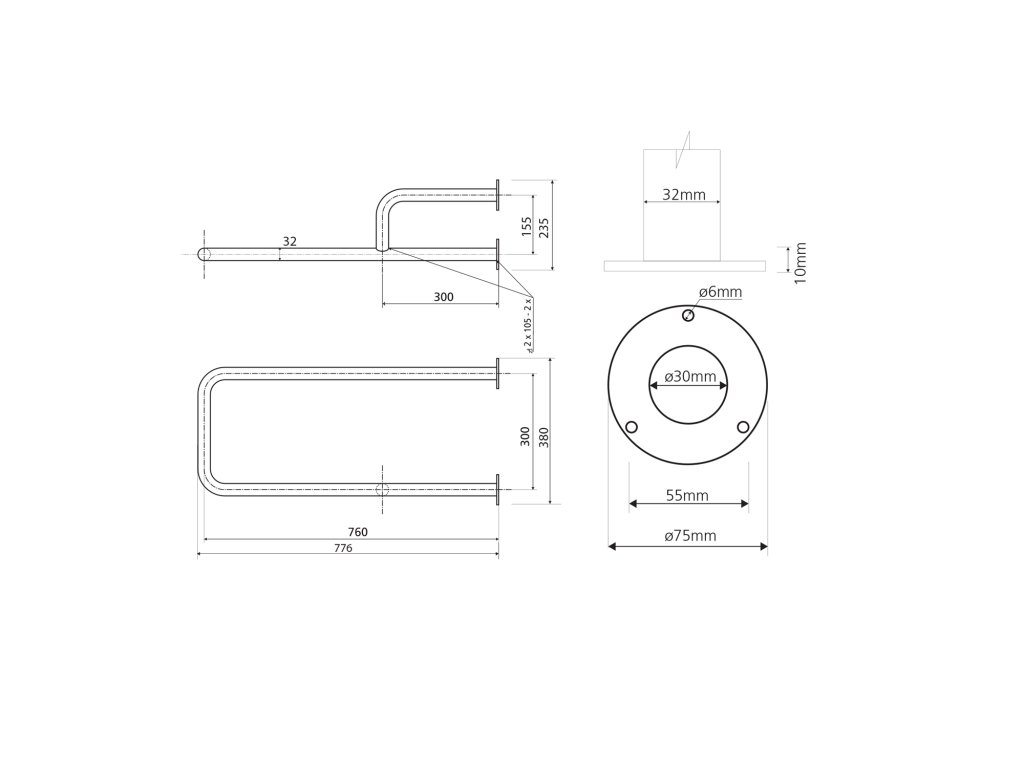 K uchycení jsou dodávány nerez šrouby podle DIN 95, 6×60 mm s hmoždinkami z plastu pro montáž do plných cihel a betonu.