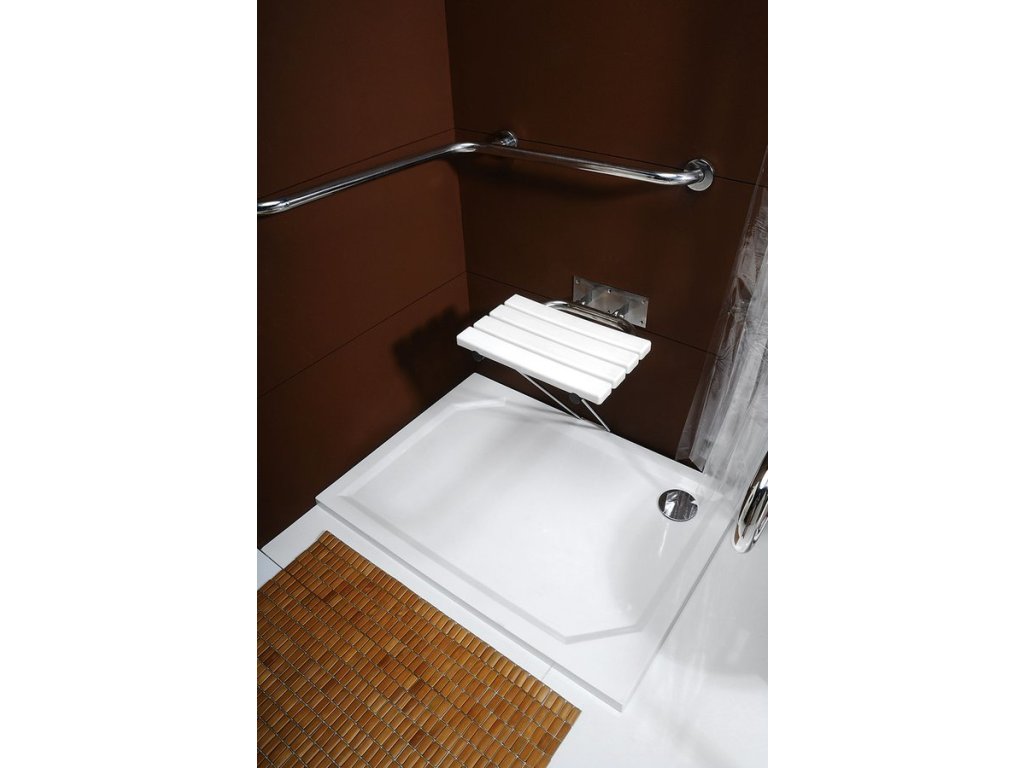 Sapho HANDICAP sklopné sedátko do sprchového koutu s opěrnou nohou, 44x45cm, bílá XH001