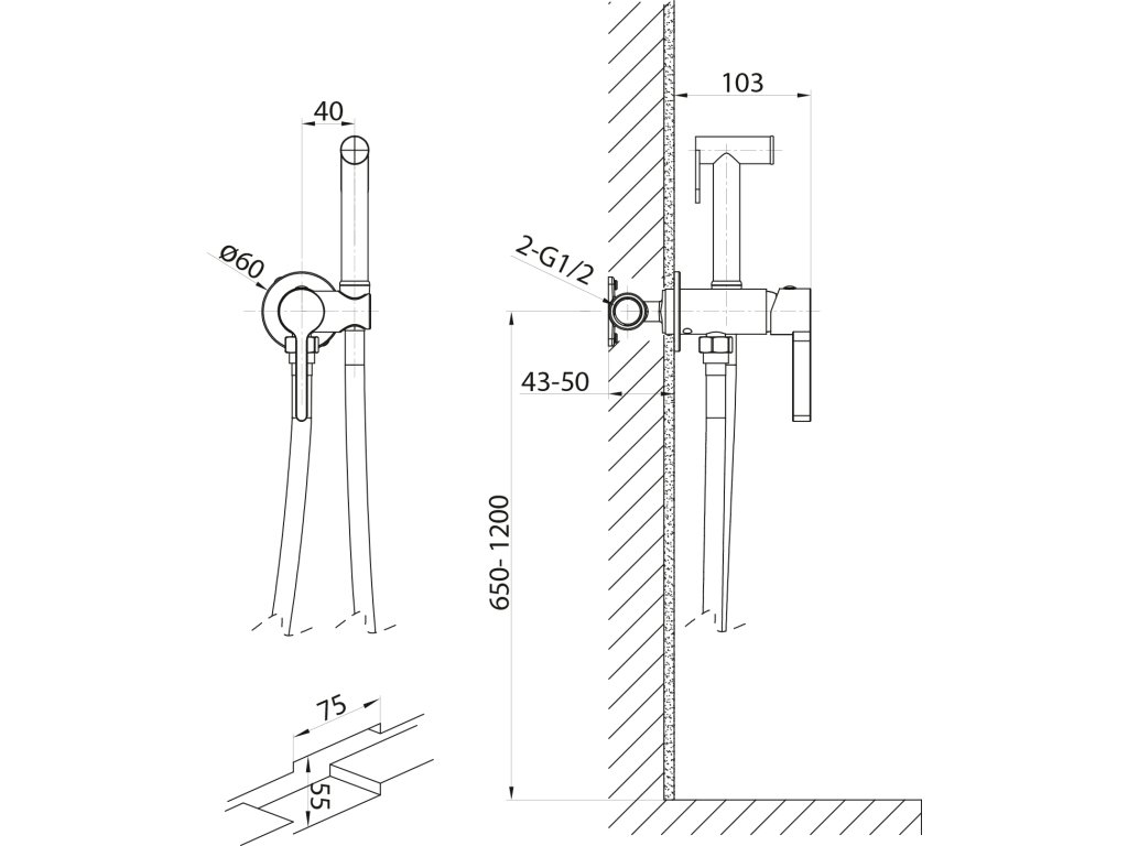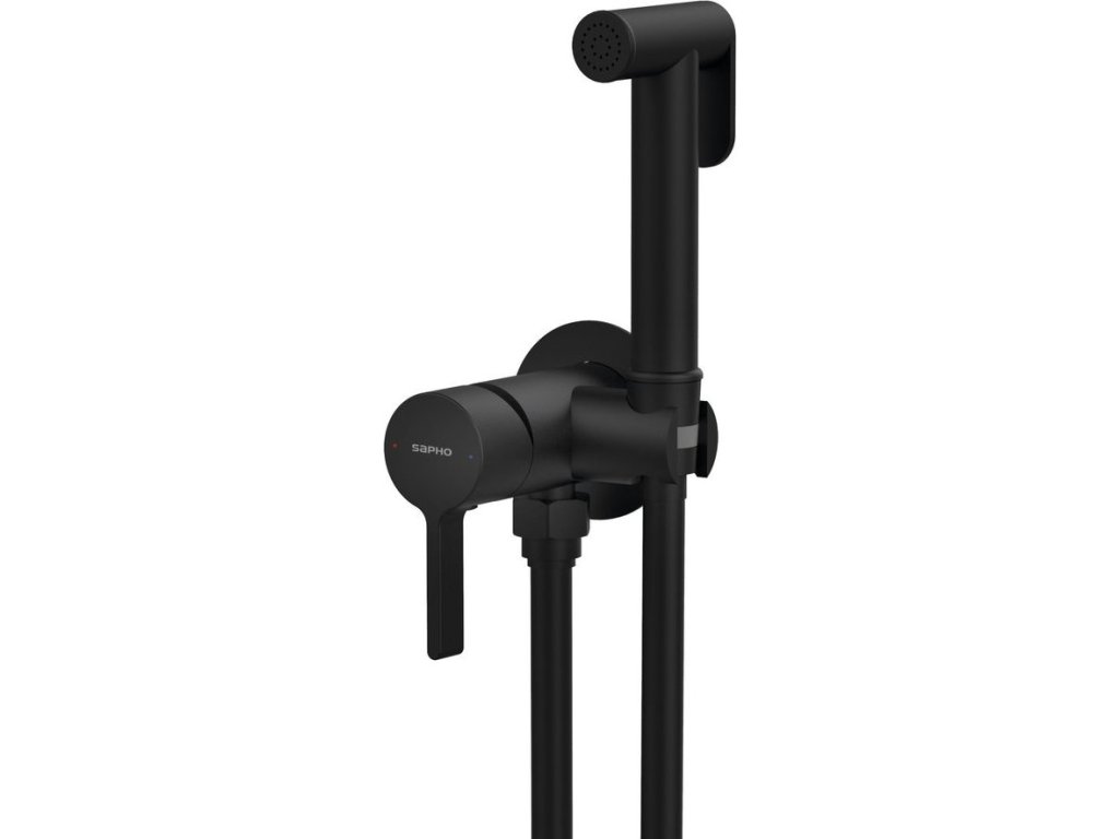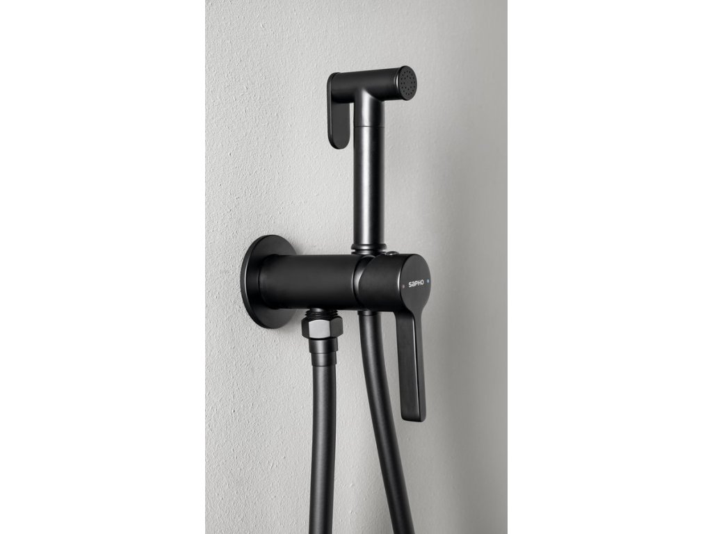 Sapho ICONIC podomítková bidetová baterie se Stop sprškou, kulatá, černá mat AF040B