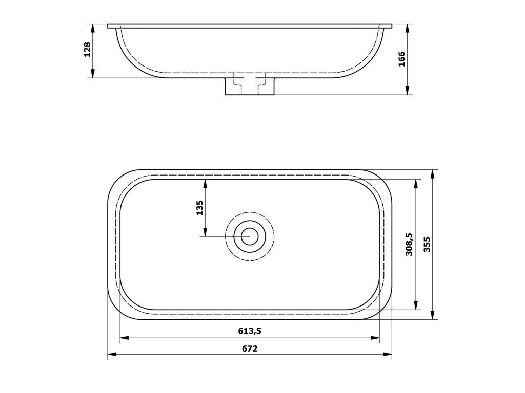 - Vnitřní rozměr mycí části (ŠxVxH) 613x116x308 mm.
