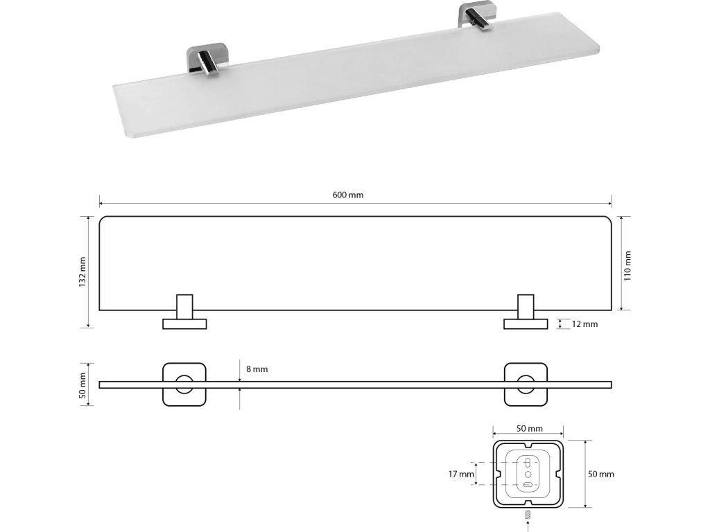 Sapho INSIA polička skleněná 600x50x132mm, chrom IS015