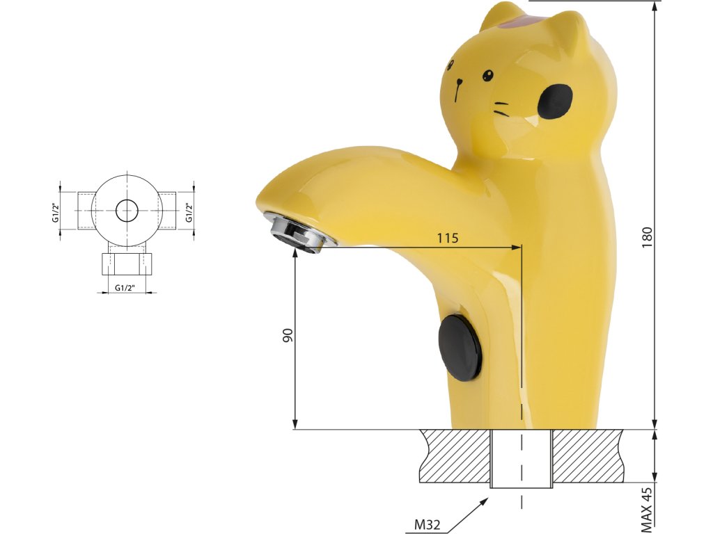 Sapho KID Senzorová stojánková keramická baterie 6V DC (4xAA), kočka, žlutá PS402Y