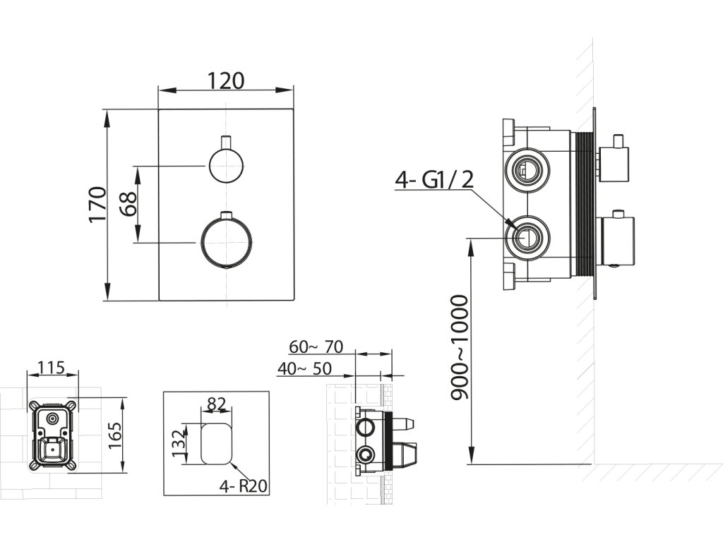 Sapho KIMURA podomítková sprchová termostatická baterie, box, 2 výstupy, chrom KU682