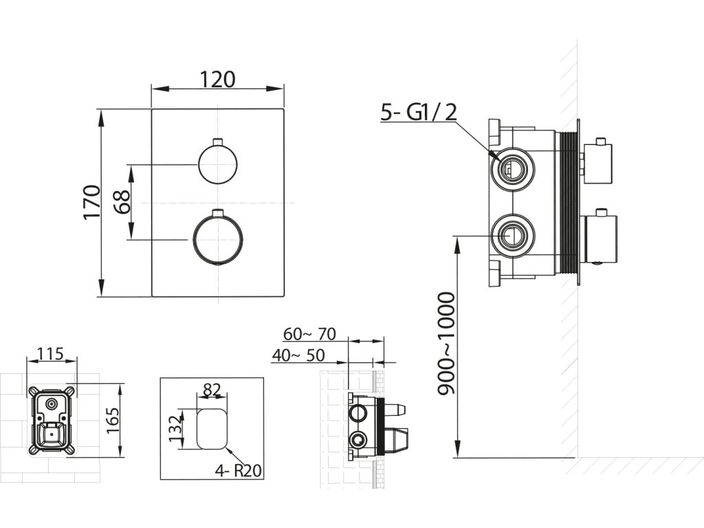 Sapho KIMURA podomítková sprchová termostatická baterie, box, 3 výstupy, chrom KU683