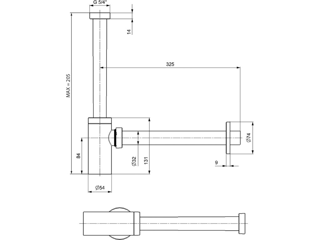 Sapho KING umyvadlový sifon 5/4", odpad 32 mm, ABS/černá mat 9595PR25K9