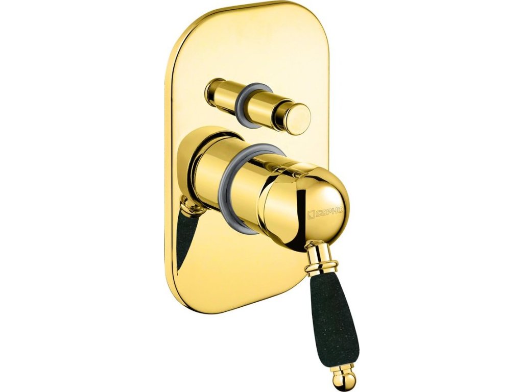 Sapho KIRKÉ BLACK podomítková sprchová baterie, 2 výstupy, černá páčka, zlato KI42NZ