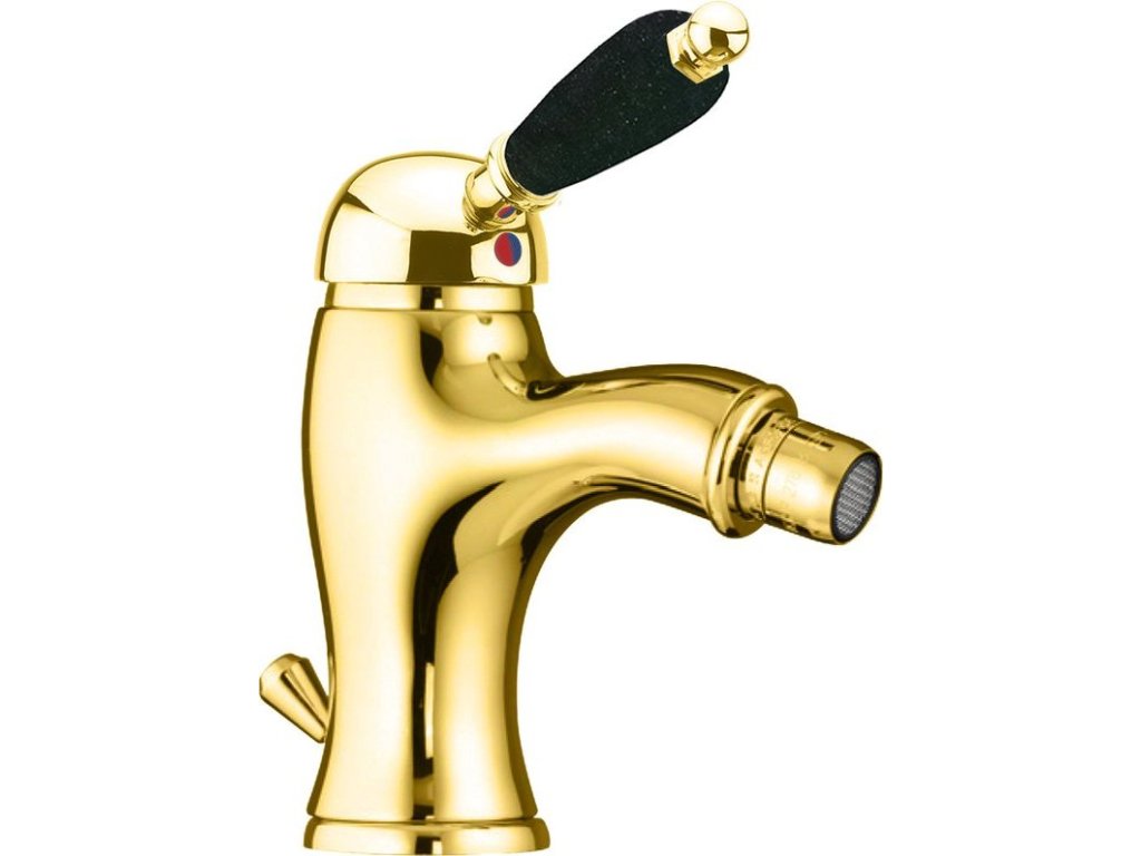 Sapho KIRKÉ BLACK stojánková bidetová baterie s výpustí, černá páčka, zlato KI03NZ