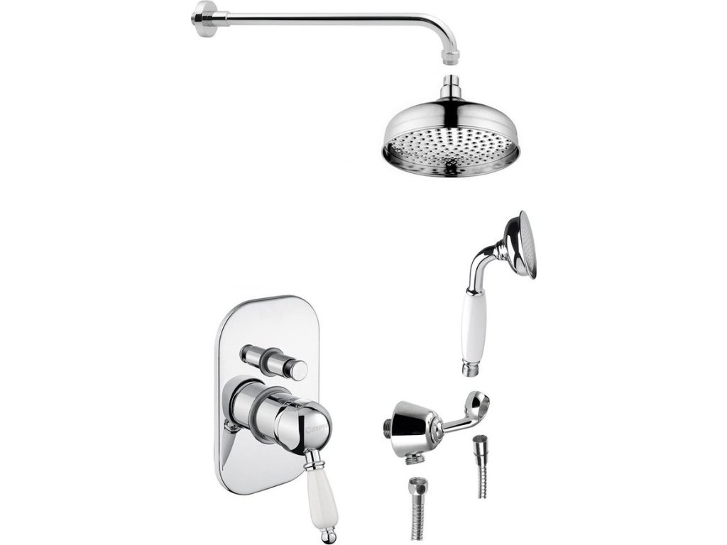 Sapho KIRKÉ WHITE podomítkový sprchový set s pákovou baterií, 2 výstupy, bílá páčka, chrom KI42BC-01