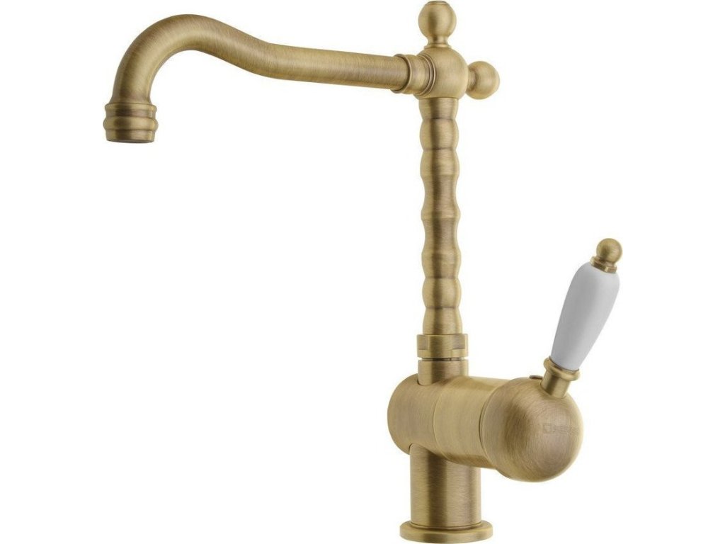 Sapho KIRKÉ WHITE stojánková dřezová baterie, bílá páčka, bronz KI14BB