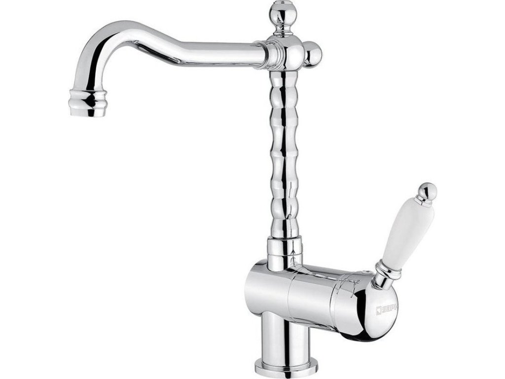 Sapho KIRKÉ WHITE stojánková dřezová baterie, bílá páčka, chrom KI14BC