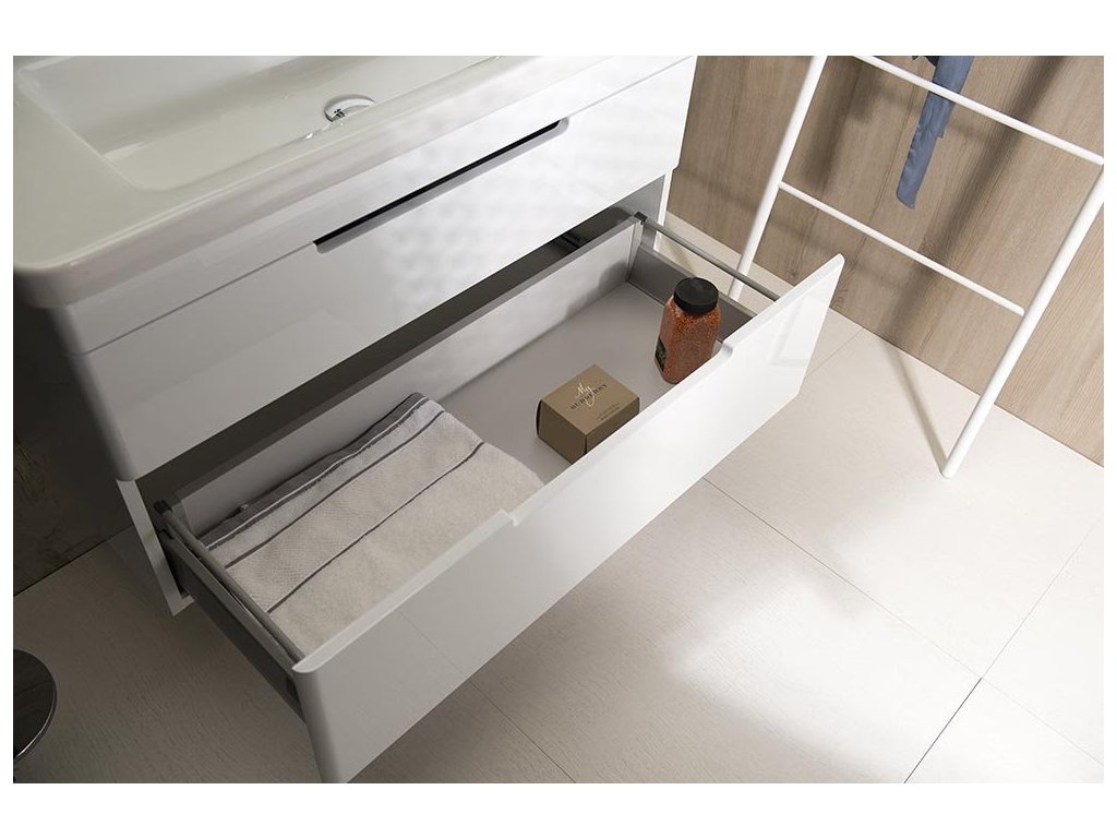 Nábytek je vybaven pojezdy zásuvek s pomalým dojezdem a systémem automatického dovření zásuvek. Již žádné hlučné dovírání.