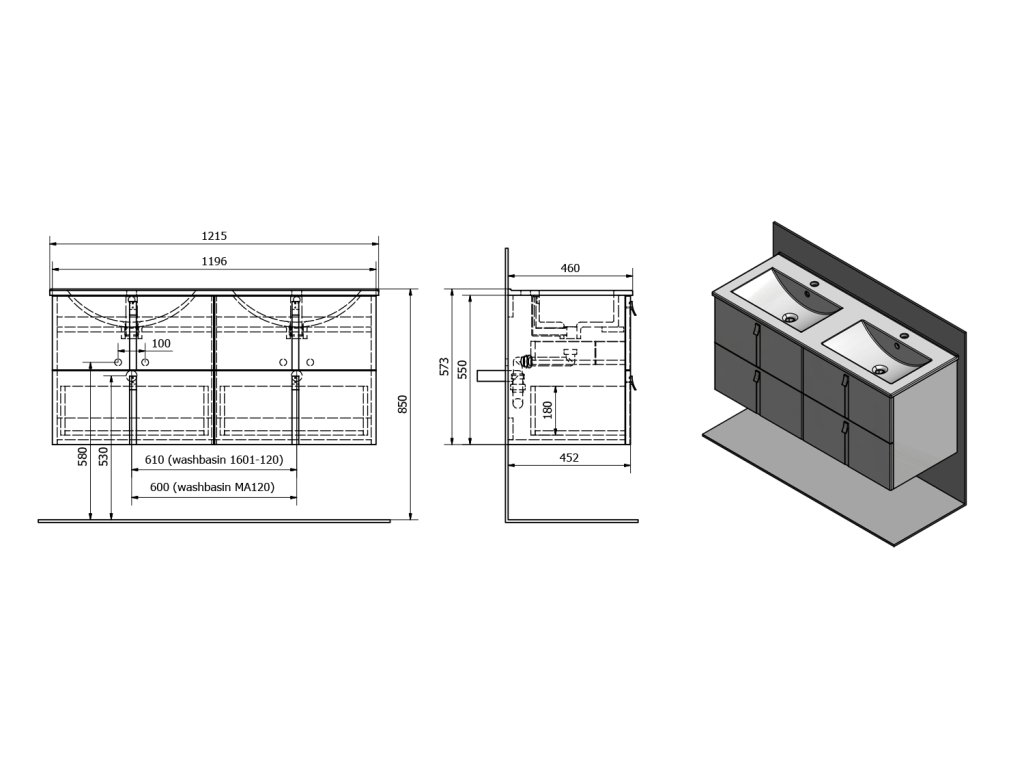 Sapho Koupelnový set MITRA 120, dvojumyvadlo, bordo KSET-007